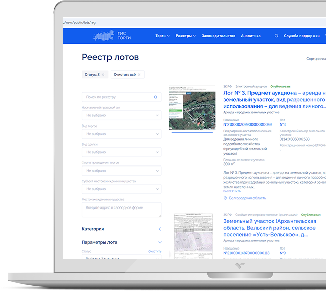 Имея регистрацию в ГИС Торги или аккредитацию на электронной площадке можно приступать к поиску и подбору торгов, соответствующих вашему направлению работы.